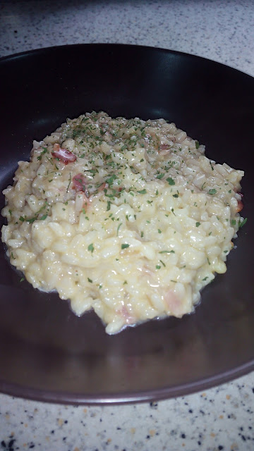 Y es un plato bastante sencillo de preparar, que quieres variar, pues cambia el bacón por setas por ejemplo, pero sigue toda la receta exactamente igual, tan solo cambia ese ingrediente por el que te apetezca ese día y tendrás tu risotto .Fácil verdad?